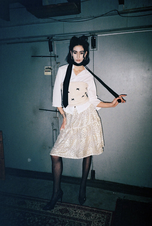 Denim Wrap Half Skirt & Shoulder Zip Set